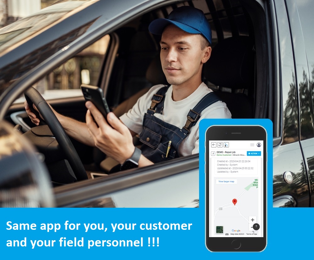 Ajută-ți echipa de teren să lucreze mai rapid și mai eficient. HomeService este integrat cu Google Maps pentru localizarea ușoară a adreselor clienților. Când o lucrare este alocată, tehnicianul de teren trebuie doar să deschidă fila cu detaliile lucrării, unde va găsi locația clientului afișată direct pe Google Maps.