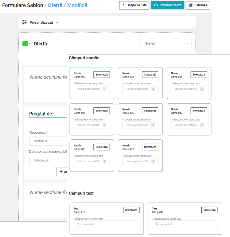 Din nou, nu trebuie să îți adaptezi afacerea la software – adaptează software-ul la nevoile tale! Fiecare formular din aplicație poate fi personalizat exact așa cum ai nevoie. Poți modifica facturile, devizele, sarcinile, listele de materiale și multe altele. Personalizarea formularelor îți permite să: